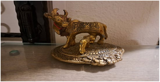 | 24 | Gau mata literally means “mother cow”. See “Thirty-three million demi-gods reside in mother cow (gau mata). Cow is our mother. The atmosphere of a house where there is a cow is very pure. Since all the demi-gods are present in a cow, we do not consider a cow as an ordinary animal; this is part of our culture. Similarly, Tulsi is not an ordinary plant. In our religion and culture, we also acknowledge rivers such as Maa, for example, Ganga Maiya, Narmada Maiya, Yamuna Maiya. We worship mountains and trees” (https://sandipani.org/the-importance-of-gau-mata-the-holy-mother-cow/, accessed on 18 September 2024). |