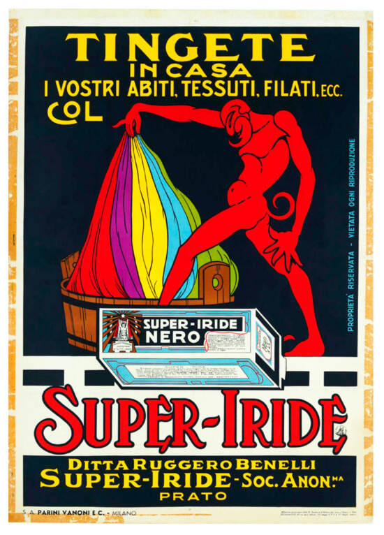 Poster for Super-Iride dye, 1937. Museo nazionale Collezione Salce, Direzione regionale Musei Veneto, su concessione del Ministero della Cultura.
