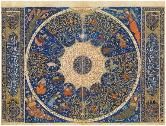 Similar types, like the remarkable Persian horoscope of Prince Iskandar (1384–1415), showing the planetary positions when he was born on 25 April 1384, are also to be found in the aniconic tradition of Muslim countries (Figure 8).