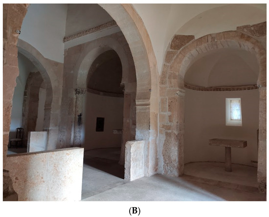 (A) Qibla wall. Al-Ḥakam II´s maqṣūra. (B) Apse of San Miguel de Escalada Church. León, 9th century (both pictures by author).
