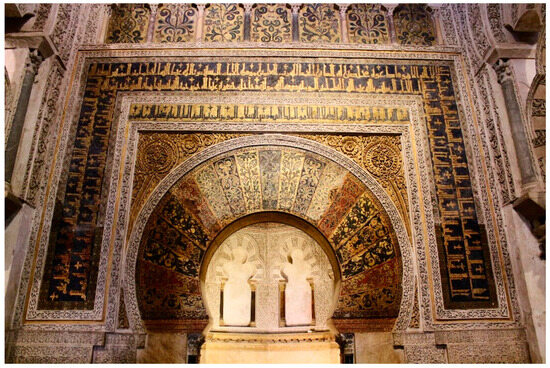 - Khoury, Nuha N. 1996. The meaning of the Great Mosque of Córdoba in the tenth century. Muqarnas 13: 80–98. Available online: https://brill.com/view/journals/muqj/13/1/article-p80_7.xml (accessed on 12 September 2023).