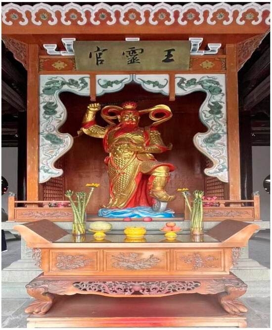 In addition to historical scrutiny, the religious content associated with the belief in Wang Lingguan has become a focal point of scholarly research. Florian C. Reiter paid attention to the case of the Wang Lingguan Temple at Mount Qiqu in Sichuan Province and made a detailed analysis of his identity as a protector and the characteristics of Daoist thunder spells (Reiter 1998, pp. 323–42). In addition, Yoshihiro Nijidou conducted a meticulous investigation into the category of Yuanshuai deities to which Wang Lingguan belongs (Nikaido 2006, pp. 206–16). Vincent Goossaert argued that closely related ritual techniques such as controlled spirit-possession, ritual theatre, and spirit-writing shaped the divine persona of the Wang Lingguan, and that his divine persona remained coherent in different contexts (Goossaert 2022, pp. 45–76). These discussions have laid the foundation for our research and enhanced our understanding of the beliefs surrounding Wang Lingguan. However, the method of analysis that relies solely on texts and stories leaves some important questions unresolved, such as the following: