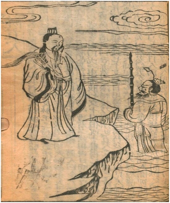 | 4 | Wang Shan and Sa Shoujian were negotiating and communicating by the river. Anonymous. Sanjiao Yuanliu Shengdi Foshuai Soushen Daquan三教源流聖帝佛帥搜神大全 (The Complete Collection of Holy Emperors, Buddhas, and Taoist Masters in the Origins of the Three Religions). Xiyue tianzhuguo cangban. Published in the Qing Dynasty. https://old.shuge.org/ebook/san-jiao-yuan-liu-sou-shen-da-quan/ accessed on 3 February 2024. |