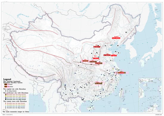 However, as early as the Spring and Autumn and Warring States periods, Chinese religion had already eliminated the pure “divine rule” and focused on human affairs. Undoubtedly, the sacred and worship spaces of Buddhist and Taoist holy mountains in China are mostly formed by the worship of religious saints and relics, forming holy sites. However, in specific contexts, the significance of mainstream religious mountains in China is mostly dominated by humanities, rather than relying solely on the derivation of Buddhism and Taoism (Du and Han 2019). In China, the idea of sacred mountains goes back to the dawn of history, long before the introduction of Buddhism and the emergence of religious Taoism (Naquin and Yu 1992). In worship space with mountains as the main body, the Zhenshan system, which is dominated by Confucianism, the third largest traditional Chinese religion, is a unique cultural phenomenon in China’s traditional worship space, with special cultural roots, spatial order, and spatial significance, and thus is more representative of China’s worship space. Gu Hongming 辜鴻銘 once mentioned the difference between Confucianism, Christianity, and Buddhism: Christianity and Buddhism are human religions or church religions, while Confucianism is a social or national religion. The true greatness of Confucianism lies in giving people the correct national philosophy and elevating this philosophy into a religion. Therefore, in terms of the social functions it creates, Confucianism is the same as religion, no different from Christianity and Buddhism, and can be regarded as a broad religion (Gu 2018). The Zhenshan system, constructed through Confucianism and based on the traditional Chinese view of nature, has had a more far-reaching influence on the construction of the Chinese belief system, the geospatial system of the land, and even the urban and rural spatial system in the course of China’s long-term historical development. The Zhenshan system is an indispensable research content in the study of Chinese worship space, and an important breakthrough in exploring the deep cultural connotations of traditional Chinese natural views, religious concepts, and educational methods. Based on the uniqueness of Zhenshan in the world’s worship space and its representativeness in China’s worship space, this article summarizes the spatial characteristics and significance of Zhenshan worship in the light of the formation and change process of the Zhenshan system. Moreover, this paper summarizes the process of the formation of the uniqueness of Zhenshan in the process of cultural construction.