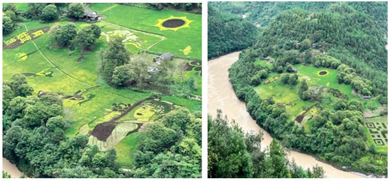 Looking at this landscape, one has a strong feeling that Arong is a “presence” (Heidegger 2002, p. 20) in the natural space. The literary images and natural scenery are not discrete things, and sacred landscape appears in their interweaving. In this spatial landscape, “this presence of the god is, in itself, the extension and delimitation of the precinct as something holy” (Heidegger 2002, p. 20). When the legend of Arong is carved into the earth, the natural space becomes the narrator of its own sacredness, which means that the sacred narrative and the earth mutually construct and inter-embed. As Heidegger said, “This setting forth of the earth is what the work achieves by setting itself back into the earth” (Heidegger 2002, p. 25).