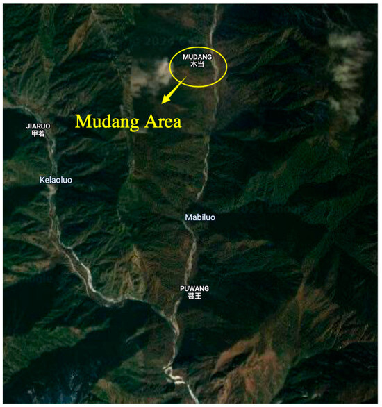 Topographic map of the Mudang area (Google Maps). Diagram by the authors.