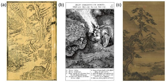 Comparison between “Christ praying in the garden of Gethsemane” and Scholar’s Hermit Images. (a) Christ praying in the garden of Gethsemane (drawn from ). (b) Christ praying in the garden of Gethsemane (drawn from ). (c) Ma Yuan, Chanting to the Moon Under Pines (1190–1222), 144.6 × 76.3 cm. Courtesy of the National palace museum, Taibei.