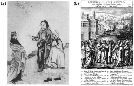 - Nadal, Jerónimo (1507–1580). 1593. Evangelicae Historiae Imagines (Images of The Evangelical Gospels). Devoted Friends of God. Available online: https://archive.org/details/EvangelicaeHistoriaeImagines/page/n5/mode/2up (accessed on 1 March 2024).