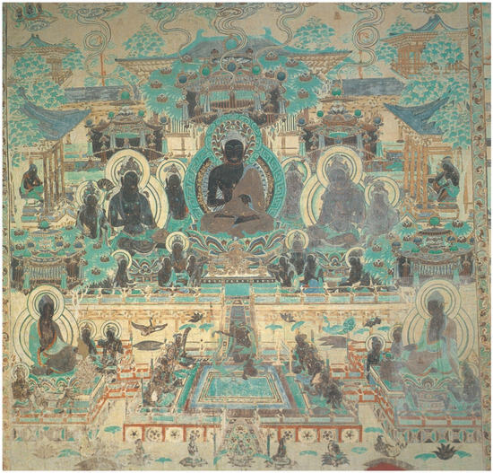 - Wang, Zhi 王治. 2018. Dunhuang Mogaoku Sui Tang xifang jingtubian kongjian jiegou yanbian yanjiu 敦煌莫高窟隋唐西方净土变空间结构演变研究 (A Study of the Changes in Spatial Structure in Illustrations to Pure Land of the Sui and Tang Dynasties in the Mogao Grottoes, Dunhuang). Gugong Xuekan 故宫学刊 1: 94–113. [Google Scholar]