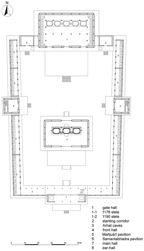 - Xu, Zhu. 2020. Buddhist Architectural Transformation in Medieval China, 300–700 CE: Emperor Wu’s Great Assemblies and the Rise of the Corridor-Enclosed, Multicloister Monastery Plan. Journal of the Society of Architectural Historians 79: 393–413. [Google Scholar] [CrossRef]
