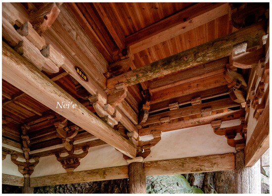 Having minimal or no shoushan is the most particular characteristic of the hip-gable roofs in the Changxi River Basin and even in Fujian (Lin 2014, pp. 124–25). In early wooden structures such as the main hall of Hualin Temple and the Shen Pavilion of Ganlu Temple, there is noticeable use of shoushan. However, there is no shoushan in the Chen Taiwei Palace in Luoyuan, the upper hall, the Nan’an Hall, or the Guanyinge of Ganlu Temple. Additionally, there is minimal shoushan in the Zushi Hall in Mingshan Temple in Yongtai.