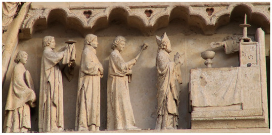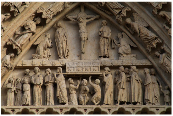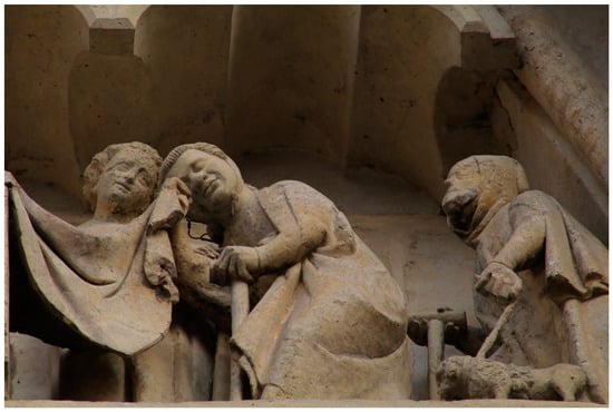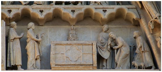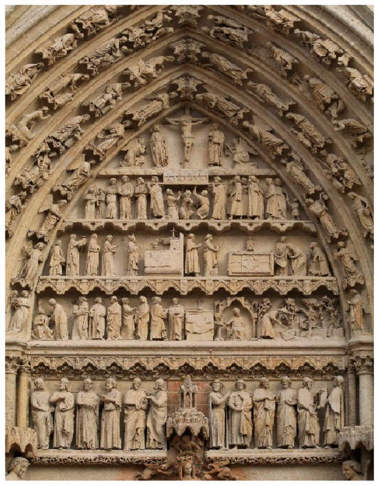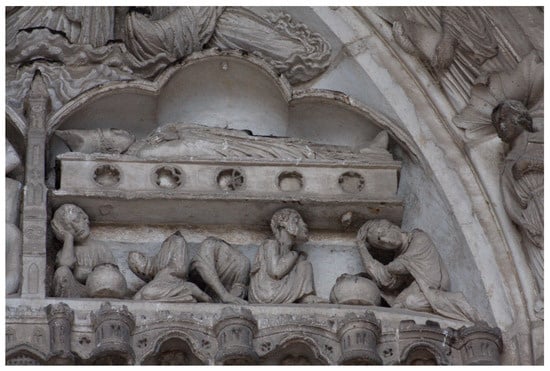 | 14 | Additionally, it should be remembered that the sculptures were once painted. On the polychromy of the portal, see the final four essays in Verret and Steyaert (2002, pp. 207–58). |