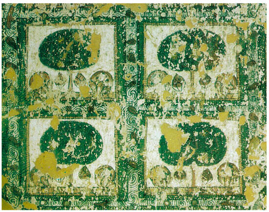 | 16 | Miyaji considers that there are only two stems of lotuses in II. 2; see Miyaji (1995b, p. 21). However, even though the lotus on the very left is in devasted condition, there are still traces of brown leaves left on the mural, especially those on the bottom-left of the square unit. The line drawing produced by Academia Turfanica clearly demonstrates this (Figure 8(1)); see Tulufanxue Yanjiuyuan and Tulufan Bowuguan (2017, p. 103). |