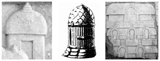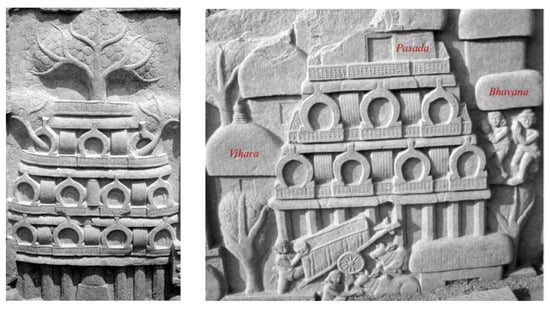 Prāsāda a Tree shrine, Kanaganahalli (Meister 2007, p. 4; Kim 2011) (Left), and three-storied prāsāda (pāsāda) (Indra’s palace in heaven), Kanaganahalli (Meister 2007, p. 10; Kim 2011) (Right). The author has obtained permission from the copyright holder.