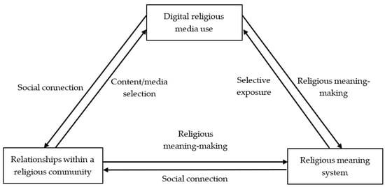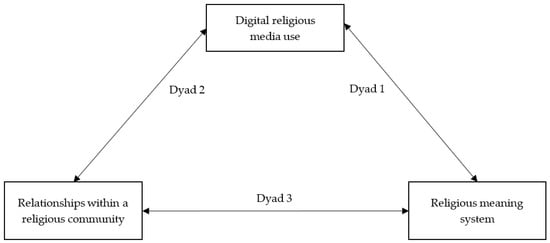 Triadic interdependence of digital religious media use, relationships with a religious community, and religious meaning system.