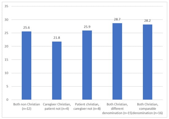 An ‘objective’ or ‘actual’ religiosity gap was studied in three ways: first, by dividing matched cases into groups (0) both not Christian, (1) caregiver Christian, patient not; (2) patient Christian, caregiver not; (3) both Christian, different denominations and (4) both Christian, same denomination. This variable was both analyzed categorically and dichotomously, in the latter situation considering both Christian or both not Christian as a match and the other situations as a ‘gap’ (see also Table 2). Second, scores of intrinsic religiosity (DUREL) from caregivers and patients were compared, using a difference score (score patient minus score caregiver: intrinsic religiosity): scores < 0 indicating a gap with higher caregiver intrinsic religiosity, a score of 0 indicating no gap (either religious or secular) and scores > 0 indicating a gap with higher patient intrinsic religiosity. Third, we compared self-rated religiousness, caregivers and patients both seeing themselves as religious or both seeing themselves as non-religious being categorized as ‘no actual gap’ and when patients identified themselves as religious and caregivers not or the other way around, rated as ‘gap’.