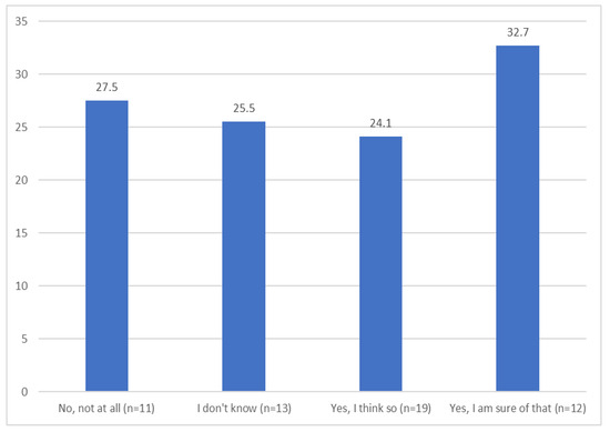 Working Alliance Inventory by patients, following subjective differences: ‘My caregiver has a similar outlook on life to my own’ (F = 3.2; p = 0.031; df = 3, 51).