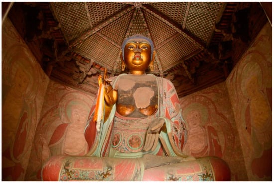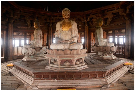 - Fu, Xinian. 1998. Zhongguo Zaoqi Fojiao Jianzhu Buju Yanbian ji Diannei Xiangshe de Buzhi 中國早期佛教建築佈局演變及殿內像設的佈置 (The Evolution of Layout in Early Chinese Buddhist Architecture and Statues). In Fu Xinian Jian Zhu Shi Lun Wen Ji 傅熹年建築史論文集 (Fu Xinian’s Treatises on History of Architecture). Edited by Fu Xinian. Beijing: Cultural Relics Press. [Google Scholar]