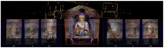 The following conclusions can be drawn through the geometric mapping and data analysis of the detailed surveying and mapping of the pagoda’s first-floor space, statues, and murals.