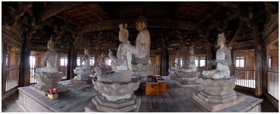 - Liu, Chang, Huinong Liao, and Shusheng Li. 2012. Shanxi Pingyao Zhenguo Si Wanfo Dian yu Tianwang Dian Jingxi Cehui 山西平遙鎮國寺萬佛殿與天王殿精細測繪報告 (Report on Fine Surveying and Mapping of the 10,000 Buddhas Hall and the Celestial Kings Hall of Zhengguo Monastery in Pingyao, Shanxi). Beijing: Tsinghua University Press. [Google Scholar]