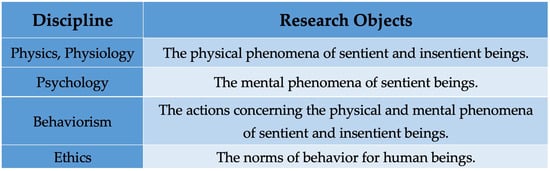 In light of the merits and limitations of behaviorism, Taixu advocates for its separation from traditional psychology to create a unique academic discipline. He envisions behaviorism as a standalone discipline, on par with physics, physiology, psychology, and ethics. To this end, Taixu outlines a multifaceted approach to the study of behaviorism, encompassing the following disciplines in Figure 1: