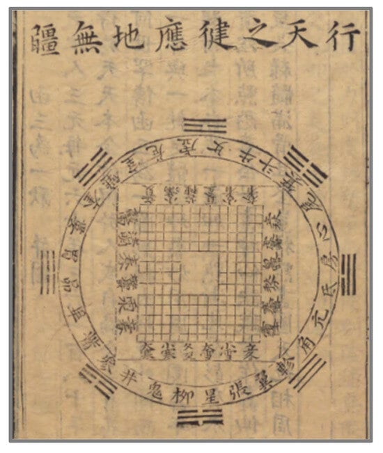 In ancient times, when the sages made the Yi, they intended to follow the principles of nature and life. Therefore, they established the way of heaven as yin and yang, the way of earth as gentleness and firmness (gangrou 剛柔), and the way of man as benevolence and righteousness (renyi 仁義). Embracing the three powers and dividing them into two, hence the Book of Yi has six strokes to form a hexagram; distinguishing yin and yang, alternating between gentleness and firmness, hence the Book of Yi has six positions to form a chapter.昔者聖人之作《易》也,將以順性命之理。是以立天之道曰陰與陽,立地之道曰柔與剛,立人之道曰仁與義。兼三才而兩之,故《易》六畫而成卦;分陰分陽,迭用柔剛,故《易》六位而成章。(Chen and Zhao 2020, p. 684)