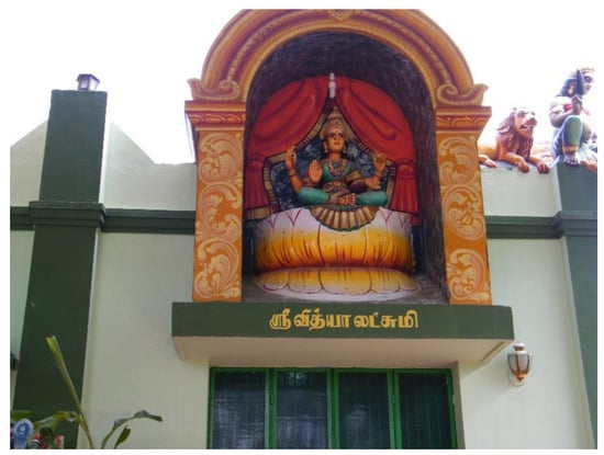 Although there have been many studies on the importance of gurus in tantric traditions, their authority in transmitting secret knowledge, and their god-like status, I argue that there is a need for broader research on cultures of authority and personalized forms of power to shed more light on how models of authority change in the kinship, religious, economic, and political spheres. In the case of Samayācāra Śrīvidyā, the spiritual visions and life experiences of the founder of the Lalitāmbikā temple (Figure 1) shaped his teachings and position within the South Indian communities. Before becoming a tantric guru, he lived a life as an astrologer and a wandering yogi. Later in life, he also pursued academic studies and graduated with a doctorate in philosophy. Thus, he began to introduce himself to the general public as Dr. Jaganathan Swami, incorporating the titles of both Doctor and Swami.
