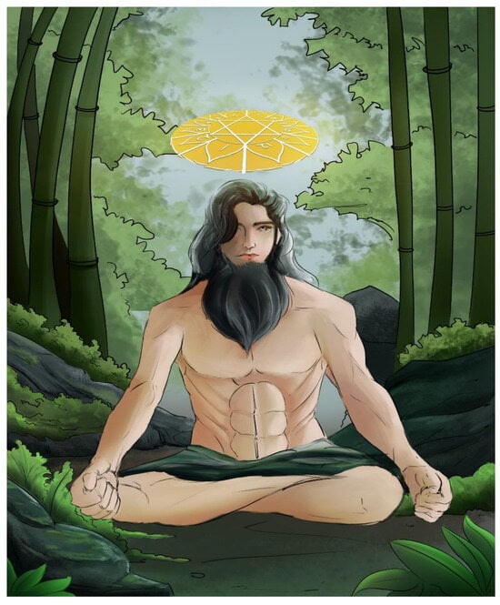 In the most common yogic model of the subtle body, found in many tantric texts, there are three main channels in the body’s microcosm.26 The central channel (suṣumṇa)27 of the subtle body runs through the center of the body, along the spine. Two other channels, iḍā (lunar) and piṅgala (solar), spiral around it and meet at a series of wheel-like nexuses. These are the cakras, the constantly vibrating energetic wheel-like centers. Numerous other channels emanate from the cakras and are generally believed to permeate the entire body. The energy channels meet and form knots (granthi) that block the free flow of inner energy and thus prevent the consciousness from reaching higher levels of realization. One aim of tantric yoga is to untangle these knots so that free flow through the channels can take place (Samuel 2014). By regulating these channels, the yogi controls and distributes energy to heal and strengthen their body (Khanna 2003).