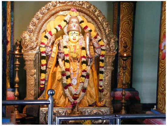 - Padma, Sree. 2013. Vicissitudes of the Goddess: Reconstructions of the Gramadevata in India’s Religious Traditions. Oxford: Oxford University Press. [Google Scholar]