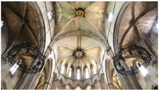 - Lluis i Ginovart, Josep, Gerard Fortuny Anguera, Agustí Costa Jover, and Pau de Sola-Morales Serra. 2013. Gothic construction and the traça of a heptagonal apse. The problem of the heptagon. Nexus Network Journal: Architecture and Mathematics 15: 325–48. [Google Scholar] [CrossRef][Green Version]