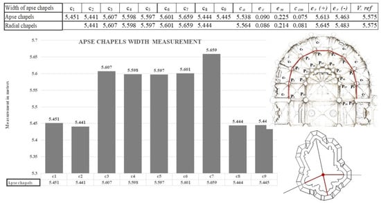 Statistics of the width of the chapels in the apse: terrestrial laser scanner (TLS).