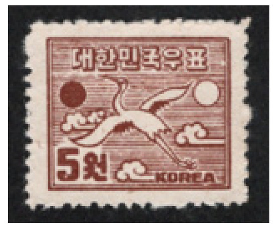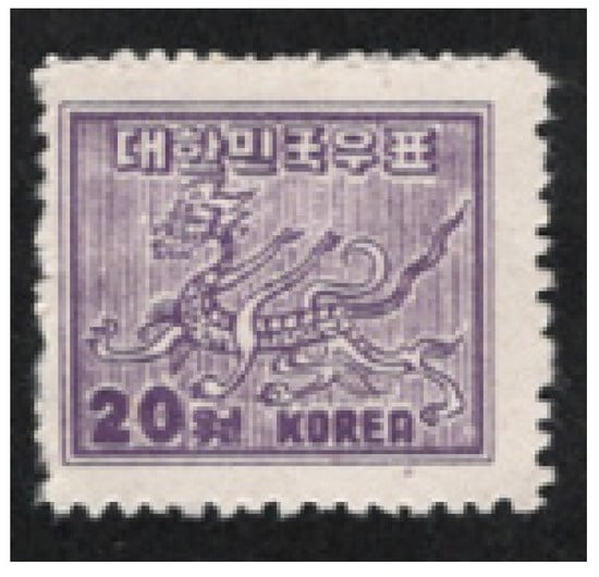 - Grayson, James Huntley. 2023. Post-Liberation Korea—The First Postage Stamps: A Comparative Semiotic Study of Nation-building in North Korea and South Korea. In Stamps, Nationalism and Political Transition. Edited by Stanley D. Brunn. London and New York: Routledge, pp. 42–58. [Google Scholar]