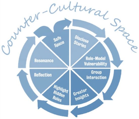 Each of the nine interlinked program theories of the Rounds listed above correlates closely with central aspects of the theory and practice of spiritual care with skills in providing a trustworthy counter-cultural third space. In this space, there is psychological safety and containment, where individual needs are contextualised within a group. These program theories provide the baseline for a spiritual or compassionate interaction where vulnerability and self-disclosure are modelled and hidden stories are shared, creating the conditions for resonance and reflection, and narratives as yet unsaid, to well up into speech.