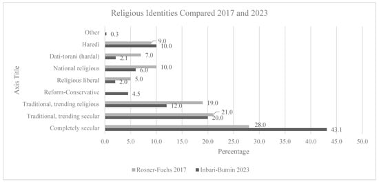 The 2017–2018 survey was taken during relatively stable political and national times, while the 2023 survey was taken after a period of political instability, with multiple indecisive general elections, and during a period of tensions and growing anti-government demonstrations. While comparing the two surveys, a few differences are striking regarding the polarization of the Jewish society: between 2018 and 2023, the secular label has increased, while traditional and religious Zionist (religious liberal, national religious, and dati-torani) have decreased in numbers.