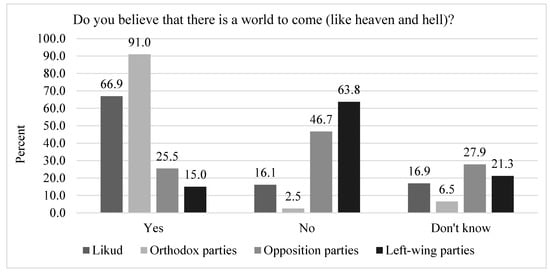 Beliefs in heaven and hell (“World to Come”) by party vote.