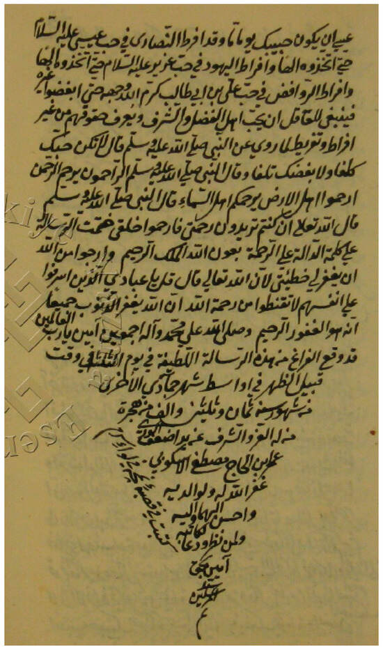 Giv 2002). There is a record that it was written by ‘Umar ibn al-Ḥāj Mustafa al-Uskūbī in the town of Nemja in Serm sanjak in the middle of the month of Jumaz al-Ḥājaluhra in the year 1033 AH (121b) (See