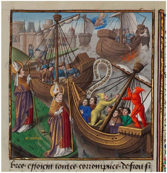 | 3 | On devotional rituals connected with sailors, see Gambin (2014), and, albeit for a later period, the overview in Patarino (2012) and Bassett (1885, p. 412) also references maritime rituals connected specifically to Nicholas’s feast day. |