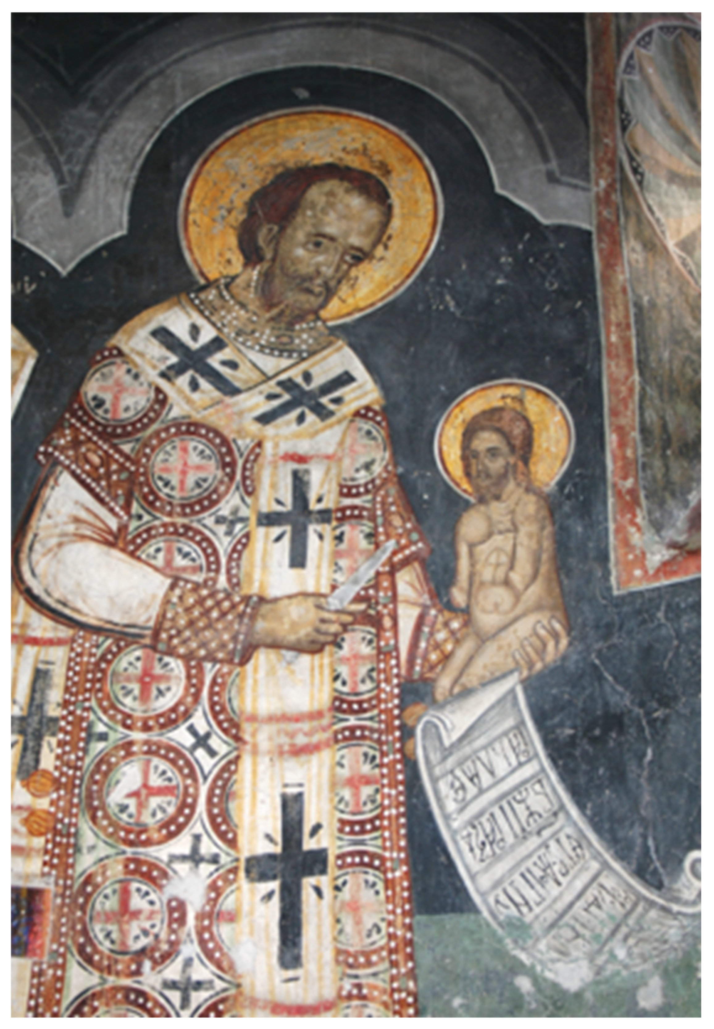 - Walter, Christopher. 2000. The Christ Child on the Altar in the Radoslav Narthex: A Learned or Popular Theme? In Pictures as Language. How the Byzantines Exploited Them. London: Pindar Press, pp. 229–42. [Google Scholar]