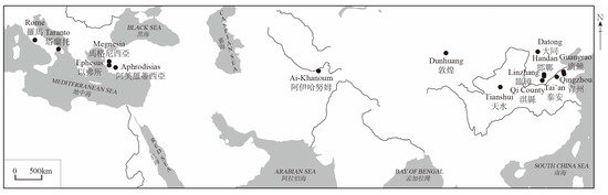 Shi 2007, pp. 145–52). Along this route, a large number of people including Sogdian-led merchants, Sino-foreign envoys, and Buddhist practitioners traveled between East and West. Exotic artifacts (such as Mediterranean goods or their Central Asian imitations) and associated Western cultural elements flowed into the Central Plains on a large scale (