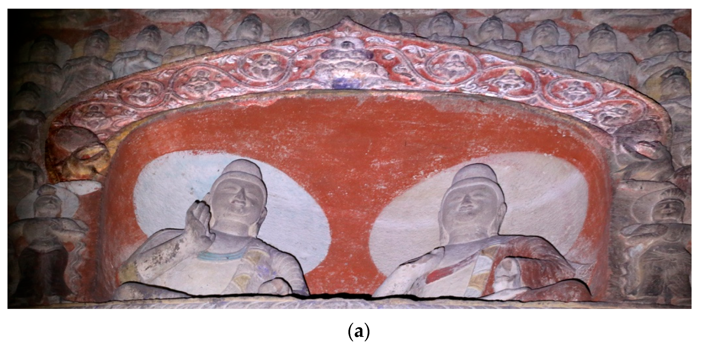 Figure 2). Most of them are stone carvings in relief, and a few are cast in gilt bronze. They are mainly applied to the halos and their adjacent areas of buddha images, and a small number are also applied to the arches of niches and the edges of steles.