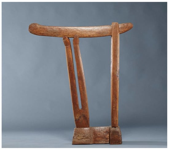 Buddhism, a long-standing religion in Korea, began to change along with the various drastic changes in the country since the twentieth century. As the era of modernization approached, people who had to live under Japanese colonial rule were forced to erase their existence as Koreans under political and social pressure and in a cultural environment where they were exposed to new cultures from various parts of the world, many Koreans tried to regain their lost country, cope with the latest times, and maintain their identity as Koreans. After the 1950s, many Korean artists, such as Kwon Jin Kyu and Chang Ucchin, protected Korean sentiments with their artistic styles, and their fierce lives and passion for art, which valued human dignity and lived lives, were projected into their works. In the case of Kwon Jin Kyu, it is worth noting that rather than simply producing works that fit the iconography of Buddhist works or follow existing traditions, he created new modern sculptural works inspired by primary forms but with his interpretation and expression (Yeol Choi 2011, p. 90). Kwon Jin Kyu grew up in a Buddhist family and was naturally exposed to the religion, which gave him a deep connection with Buddhism. He was commissioned to work for temples several times and created works inspired by Buddhism. In 1948, Kwon Jin Kyu stayed at Beopjusa Temple for six months, studying the works left behind by his teacher, sculptor Kim Bok-jin (1901–1940), and participated in the creation of the Maitreya Buddha at Beopjusa Temple. Kwon Jin Kyu said, “When the lush summer forest turned into the colorful autumn colors, I felt that I had already become Buddha, under the miraculous spell of the Maitreya Buddha.” (Yeol Choi 2011, p. 39) His experiences of living in the temple and creating Buddhist statues several times throughout his life later became a catalyst for creating various Buddhist-related works. In particular, his older brother’s early death in 1949 made him directly experience the meaninglessness of the boundary between life and death, and he felt that there was an area in the human world that he could not interfere with, and the temple he visited whenever he felt personal anguish, which was given form in his work, Entering the Mountain (Figure 1). This work, which was produced in 1964–65, shows how his abstractly condensed thoughts are shaped through Buddhism. The word ‘entering the mountain (入山)’ is a Chinese character that means to enter the mountains, and in Buddhism, it is interpreted as meaning to become a monk. It is the first gate people pass through when entering a temple. It is lined with pillars and topped with a roof, as the starting point from the secular world to the world of Buddhism. It was inspired by the Iljumun (一柱門), which was created with the meaning of escaping worldly worries and pursuing Buddhist teachings with one mind (一心). Instead of directly representing the gate erected with a single pillar, Kwon Jin Kyu emphasized the horizontal flatness of the left pillar by making the part above the pedestal a single tree, but splitting it into two evenly as it goes up toward the sky. In contrast, the right pillar emphasizes verticality and goes beyond the lintel part toward the sky. The pedestal, divided into three parts and positioned in different shapes and directions, shows how Kwon Jin Kyu’s inspiration from traditional Buddhist styles can be reinterpreted to create new sculptures that bring balance and three-dimensionality to space.