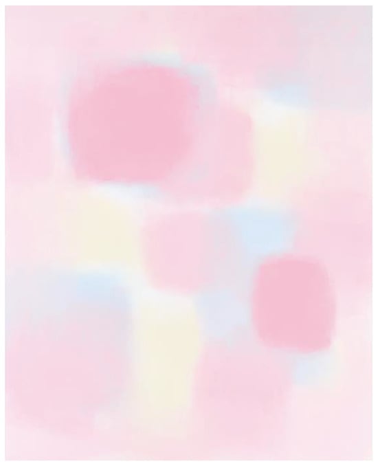 The profound reflections embedded in the work are also strongly connected to Buddhist thought and have been further developed in Suh Seung-Won’s recent works. His continuous reflections on the theme of ‘simultaneity’ have continued for over fifty years under the name of simultaneity, a name for purely expressing lines, colors, and planes as geometric abstractions. In the formativeness of the form, as seen in works such as Simultaneity 22-707, the reflections on colors and sensibility have developed in the direction of pursuing freedom (Figure 6). Suh Seung-Won’s past simultaneity had a strong cold feel of squares and corners, but his works since the 2000s have eliminated corners and have used gentle colors, pursuing works that express soft light like the evening glow (Yoo 2009, p. 4). This work is an expanded version of his belief that the most important thing in art is to be new in an experimental spirit. It is the result of his long-standing research in pursuing art that has filtered the physical properties of color and paint. Simultaneity 22-707 is a work in which pastel tones of pink, sky, and yellow coexist, with spaces where the forms become blurred (Sim 2021,15). Through this continuous filtering process, Simultaneity 22-707 is a space set in pastel tones of pink, sky, and yellow where the forms become blurred. These coexistences are warm, peaceful, and cozy colors that naturally overlap and mix with each other, creating a three-dimensional or multi-dimensional deep and invisible endless space within the screen rather than a two-dimensional one, creating a space for contemplation and meditation where the viewer can think in various ways. Suh Seung-Won’s reflections on his life, saying, “Before this body was born, what was this body, and after I was born into this world, who am I?” led people to reflect on their own lives (M. Kim 2024c). Suh also explains his new painting style in Simultaneity 22-707, saying, “I see myself immersed in a meditative world while reflecting on my life, and now, facing death, I paint while looking at myself without any noise” (Tetto 2024). When reflecting on one’s life, the elements of the meditative world are connected to the idea that one can attain liberation and enlightenment by overcoming dualistic thinking in Buddhism and observing the oneness (一義) that goes beyond opposition and discrimination based on the idea of equal non-duality. In particular, the emptiness (空) that appears in the Buddhist scripture, the Heart Sutra, form is empty, but empty is form (色卽是空空卽是色) means that something seems to exist but in reality, does not exist, emphasizing the importance of realizing that everything in the universe is empty (Strong 2015, p. 258). His current project displays an esthetic of contemplation and meditation with an esthetic and contemplative aftertaste influenced by his sense of restraint, self-recovery, and freedom. His combination of art and Buddhist elements provides a more universal space for contemplation and meditation (Yoon 2016, p. 7). Thus, Suh’s art visualizes contemplation and meditation, which are widely practiced in Buddhism as a form of practice through the medium of art. It offers a place for people today to have a greater sense of peace of mind beyond religious meaning, inducing contemplation on natural life and the world and allowing today’s people to contemplate how they should embrace one another and create a harmonious society.