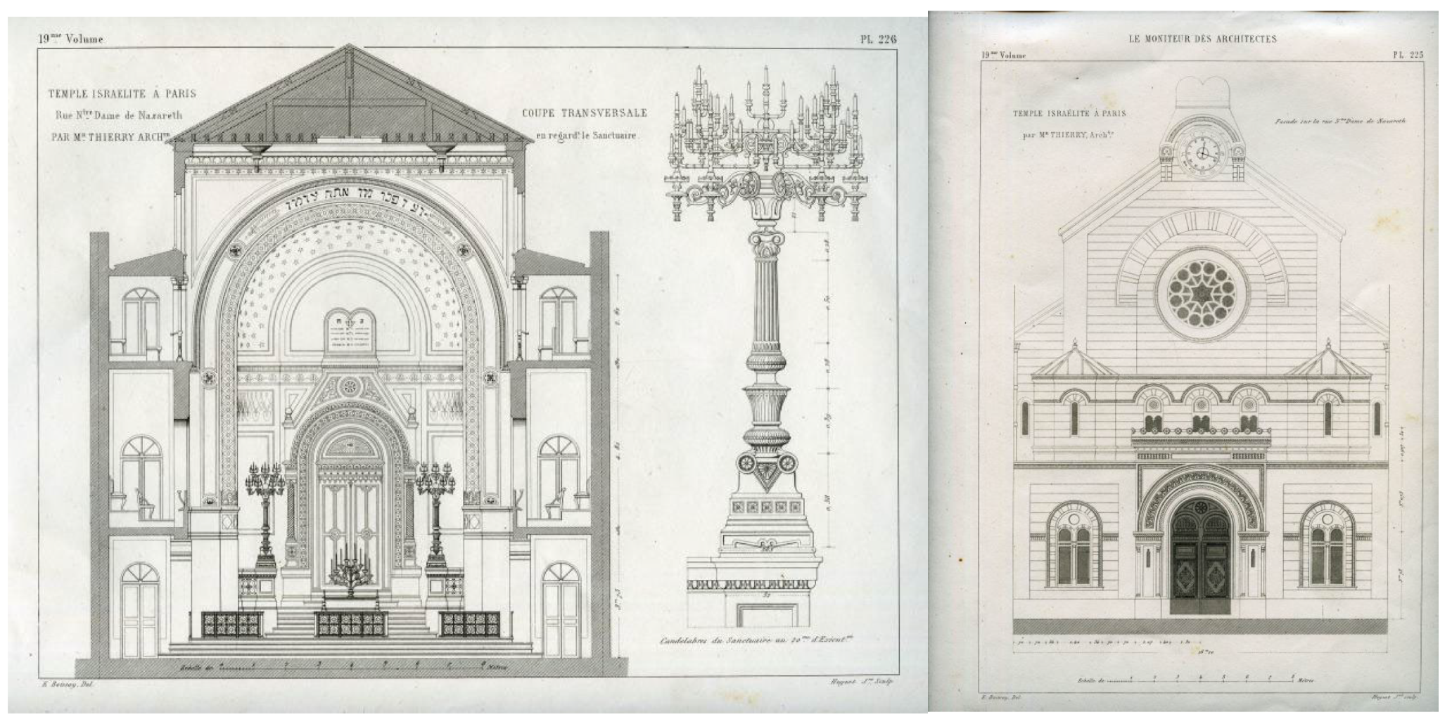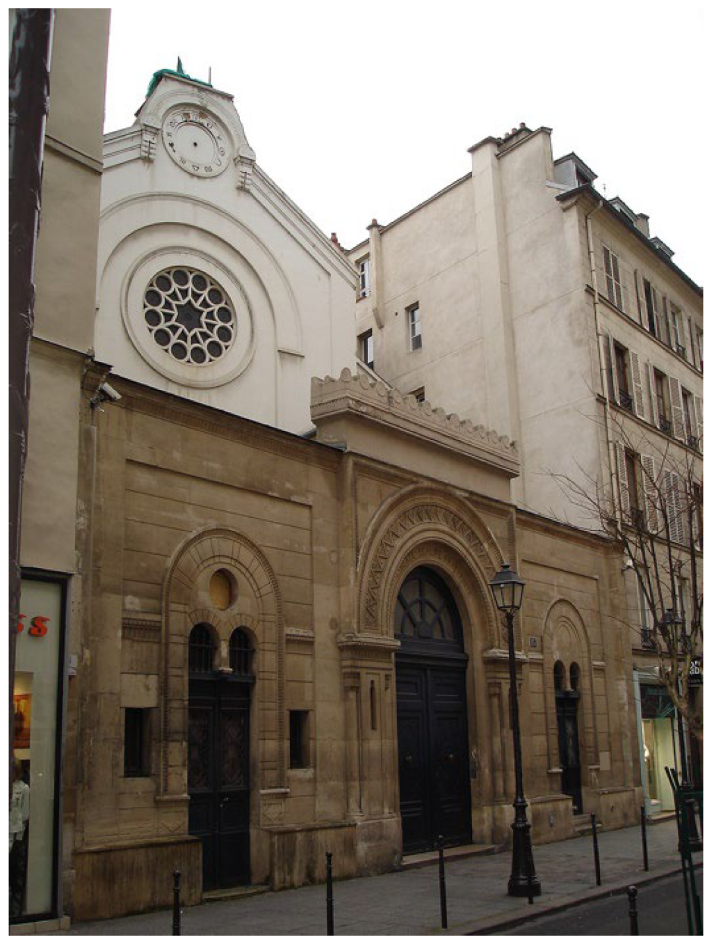 | 5 | It is known that one of the first synagogues built in Paris after Jewish emancipation was vacated by its congregation due to the actions of the property owner, while the other was demolished in the 1850s due to the threat of collapse. Therefore, definitive information regarding the architectural styles of the synagogues constructed during the early phase of legitimization in Paris is lacking (see Jarrassé 2004, p. 44). |