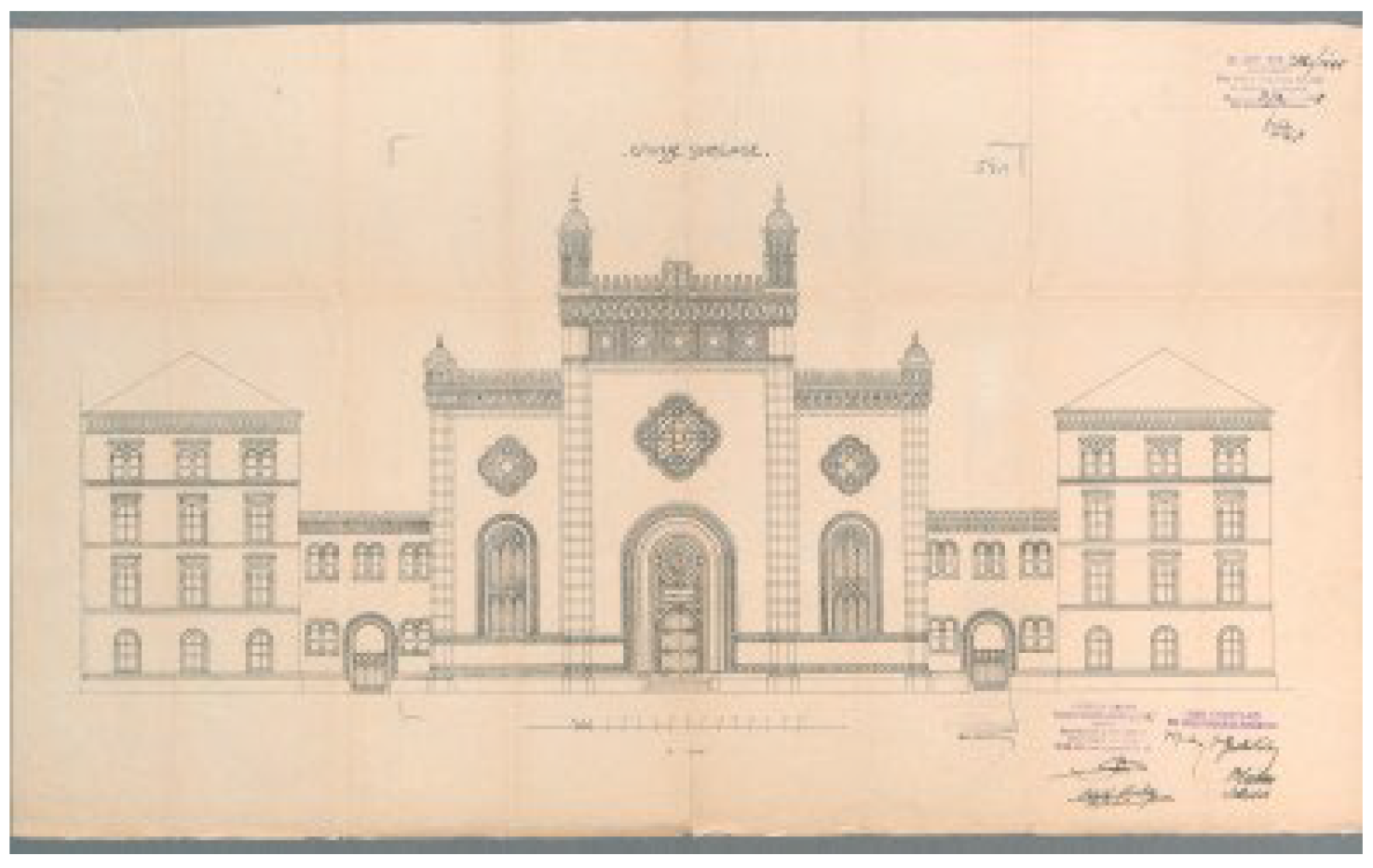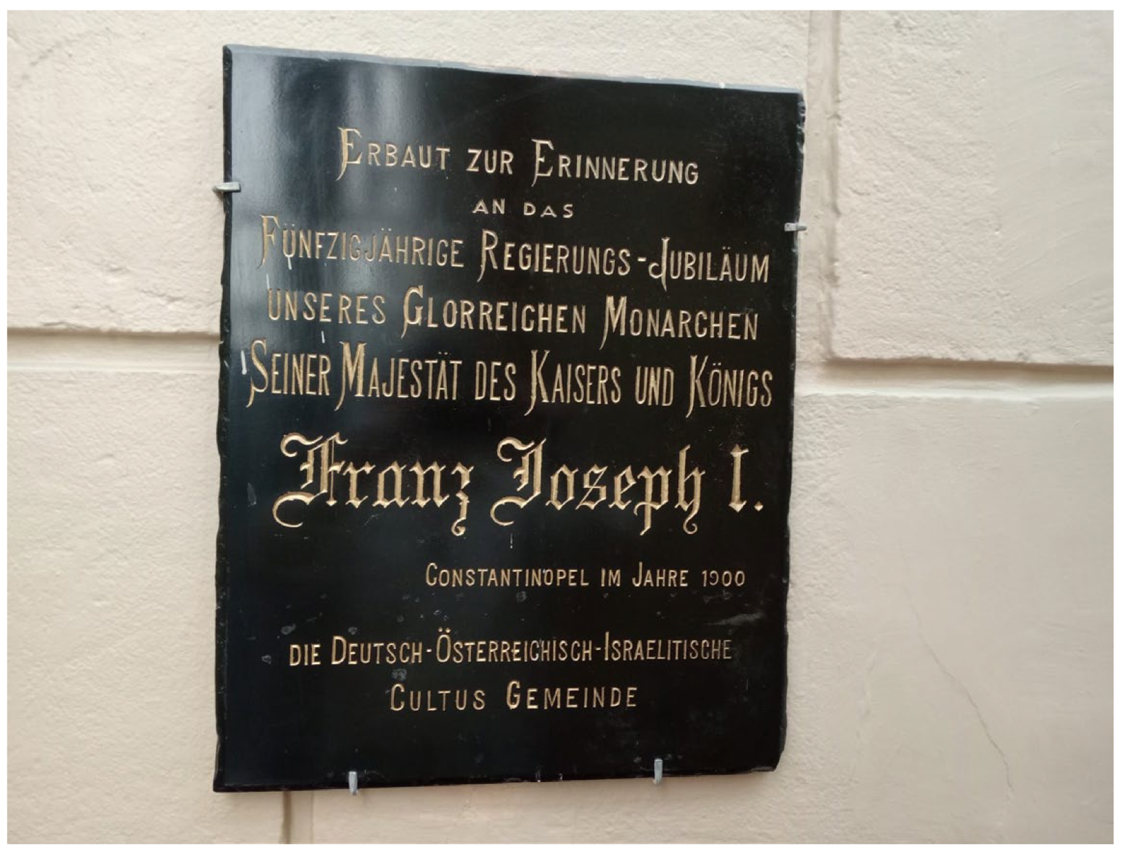 | 12 | It is not known whether this informational plaque in the synagogue was added in recognition of Franz Joseph I’s support during the construction of the sanctuary (see Schild n.d.; Güleryüz 2018, pp. 183–84). |