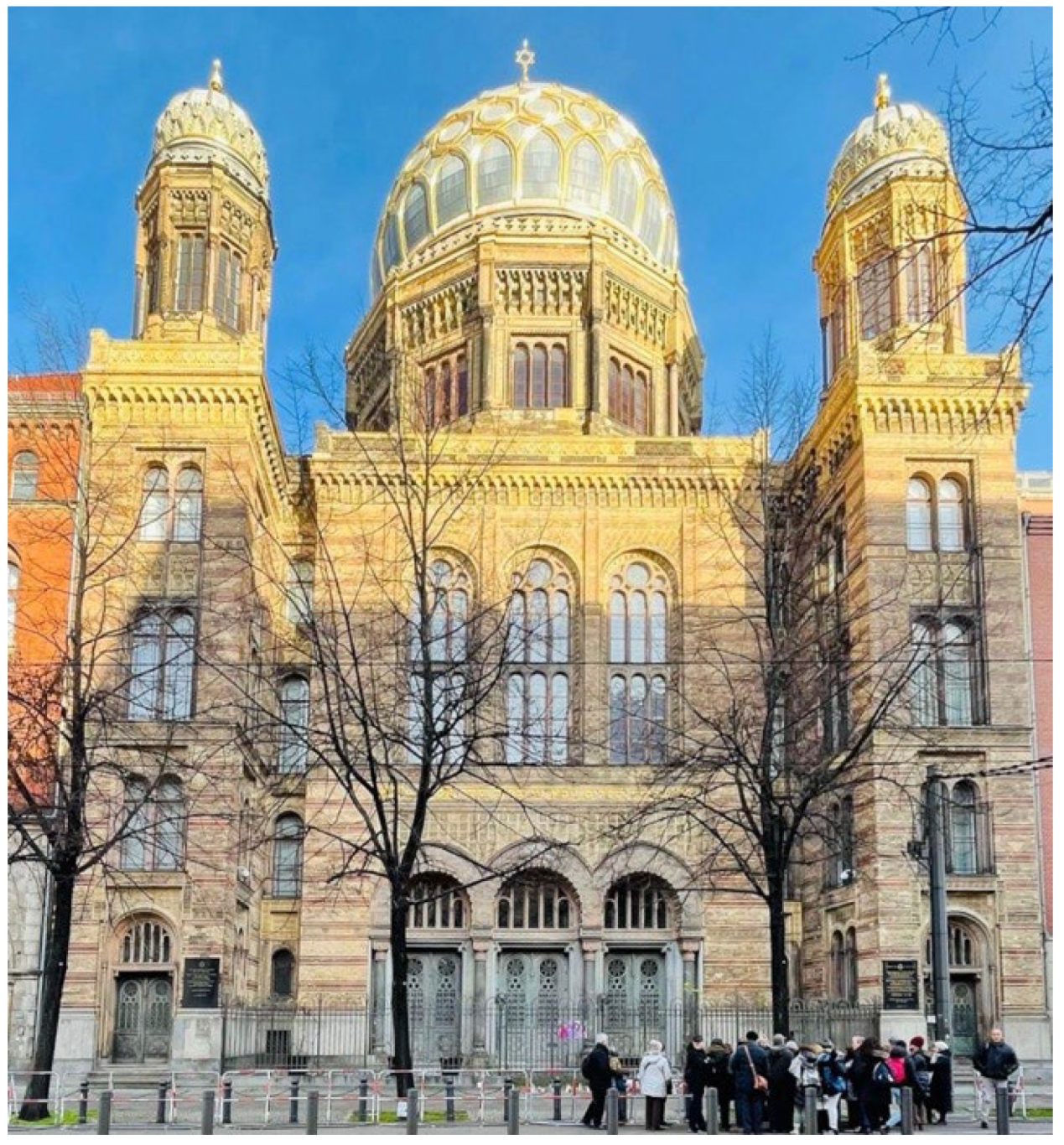 - Frübis, Hildegard. 2018. Die Neue Synagoge in Berlin (1866) und die Alhambra. Die Adaption maurischer Stilelemente und die Re-Orientalisierungdes europäischen Judentums. In The Power of Symbols: The Alhambra in a Global Perspective. Edited by Francine Giese-Vögeli and Ariane Varela Braga. Bern: Peter Lang AG, pp. 153–63. [Google Scholar]