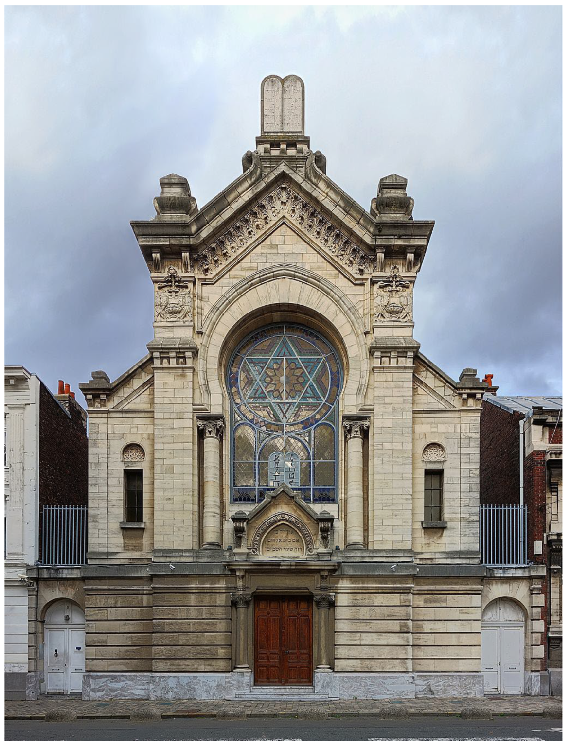 - Rigaut, Rudy. 2021. La synagogue de Lille et les deux guerres mondiales. Tsafon 81: 89–107. [Google Scholar] [CrossRef]