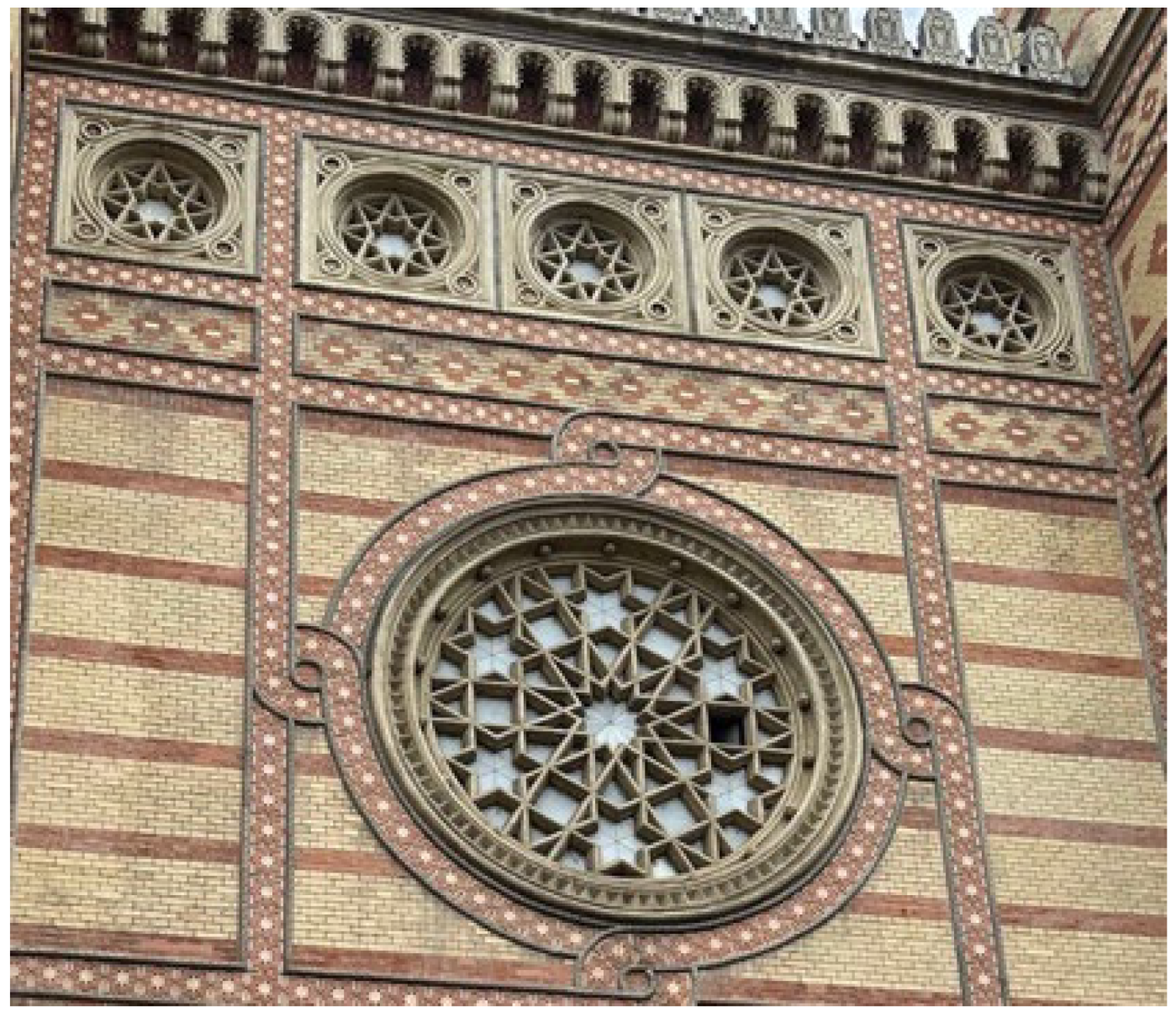- Wilke, Carsten L. 2021. Building the Great Synagogue of Pest: Moorish Revival Architecture and the European-Ottoman Alliance in the Crimean War. Jewish Quarterly Review 111: 444–69. [Google Scholar] [CrossRef]