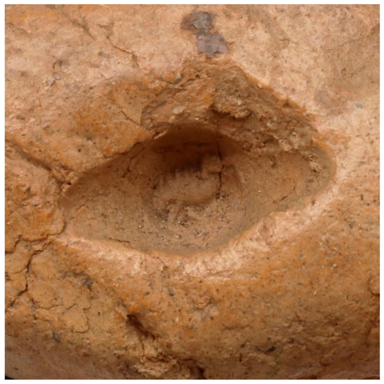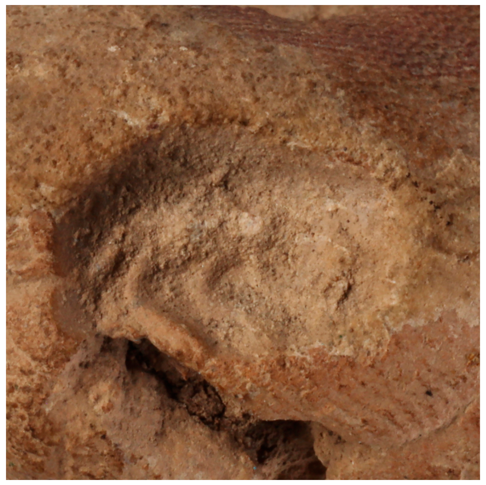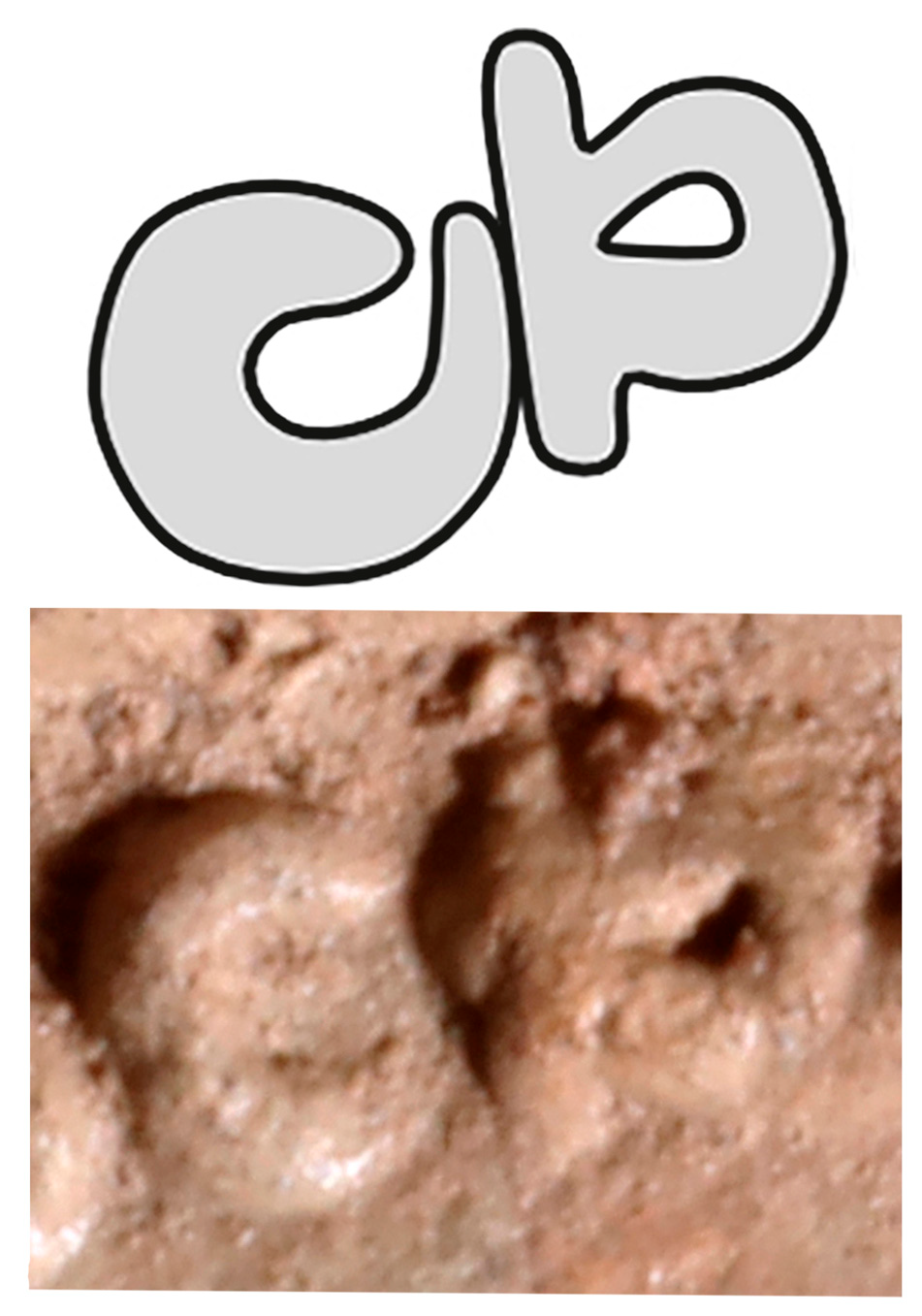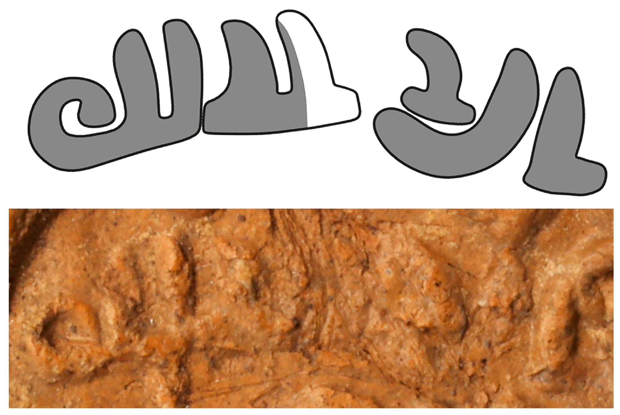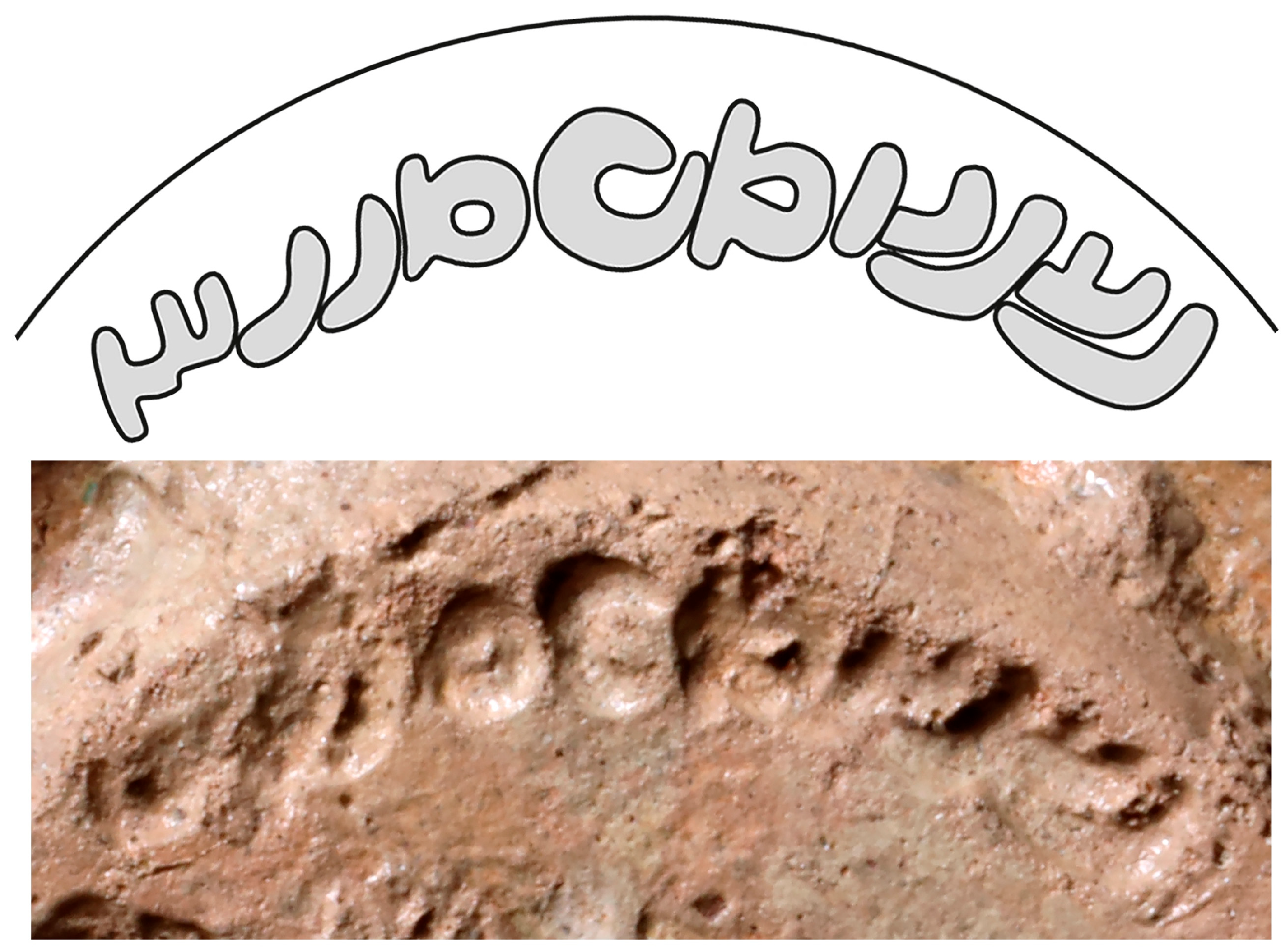 mēm one would expect some traces of a horizontal line joining onto the curved part on the left of the character. It therefore seems more likely that what appears to be a horizontal line at the centre of the character in fact belongs to the upper part of the character. Upon closer inspection of the bulla itself and with the help of multiple photographs taken from different angles and with different lighting, it appears that the line of the character forms a three-quarter circle open at the upper right, where traces of the line going up are still present (