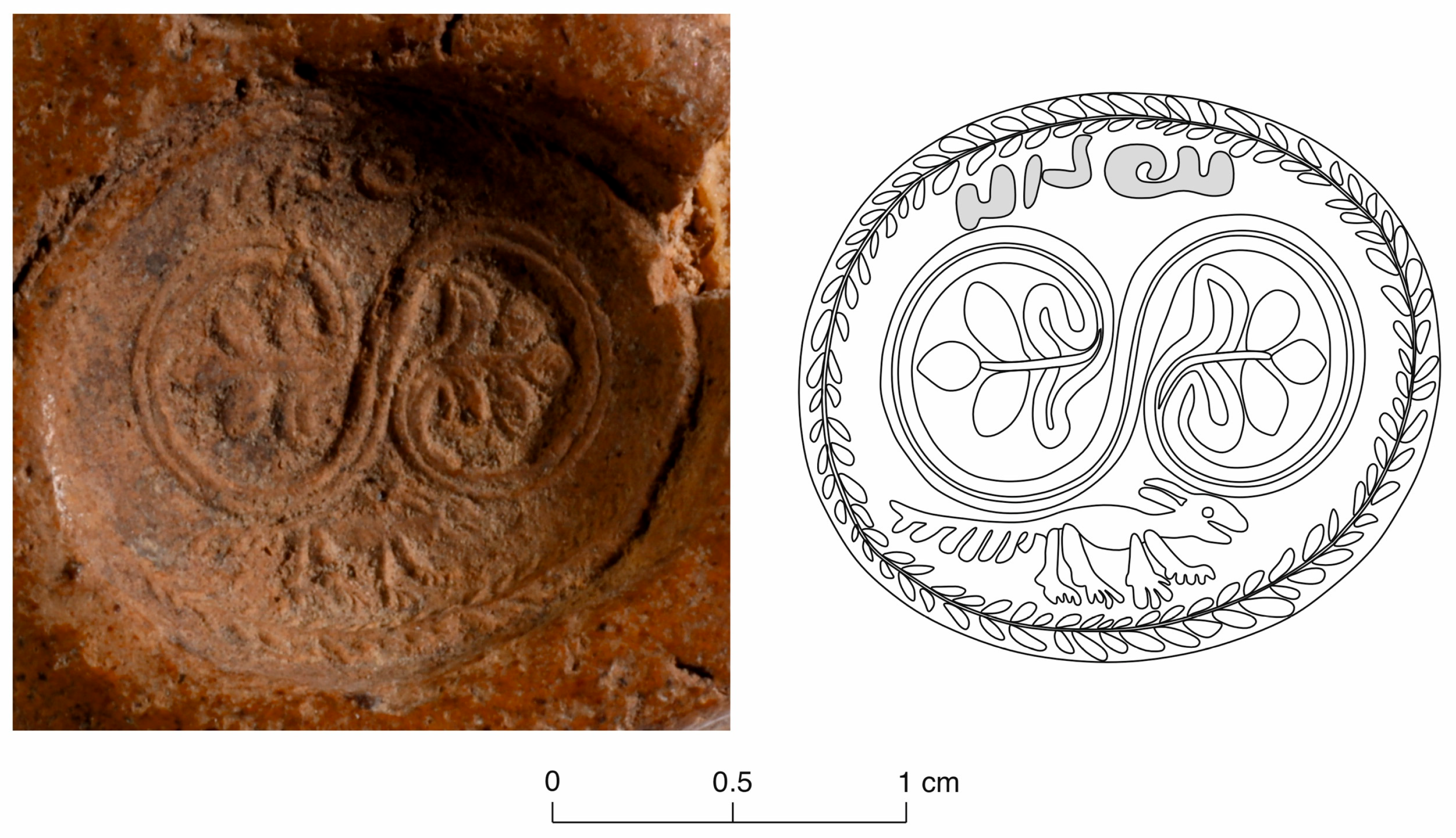 mēm ⟨m⟩, although its placement does not align with the expected content of the inscription. However, some other Sasanian seals and seal impressions do bear single letters as abbreviations for toponyms, some of which remain to date unidentified. The possibility cannot be excluded that the