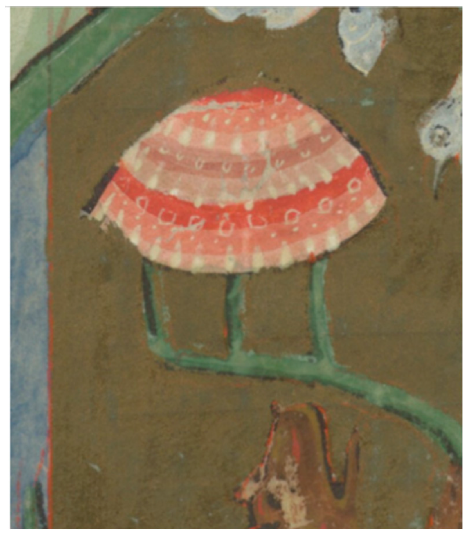 And so there is our problem, if hundreds of Early Christian and Medieval images really did contain hidden pictures of psychedelic mushrooms painted by adherents of Allegro’s “old tradition,” why didn’t anyone ever mention it? It hardly counts as evidence if the only answer that can ultimately be given is that the members of that tradition must have been “very good at keeping secrets.” And then finally, why are there so few clear examples of mushrooms in Early Christian and Medieval art?